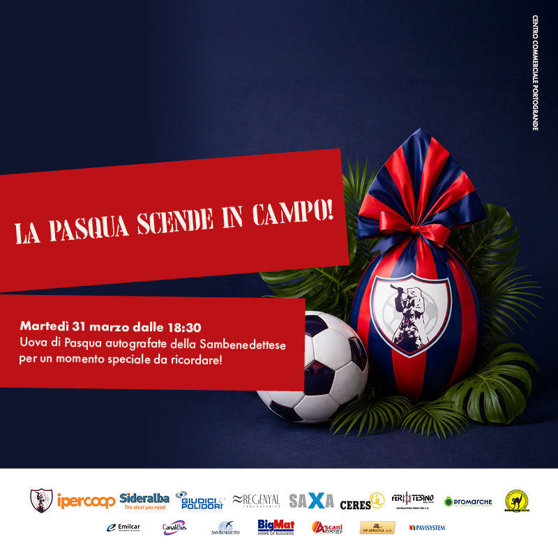 Vieni a trovarci il 31 marzo, perché avremo con noi un ospite davvero speciale: la Sambenedettese Calcio, prontissima a incontrare i suoi tifosi e autografare le uova di cioccolato della squadra.
